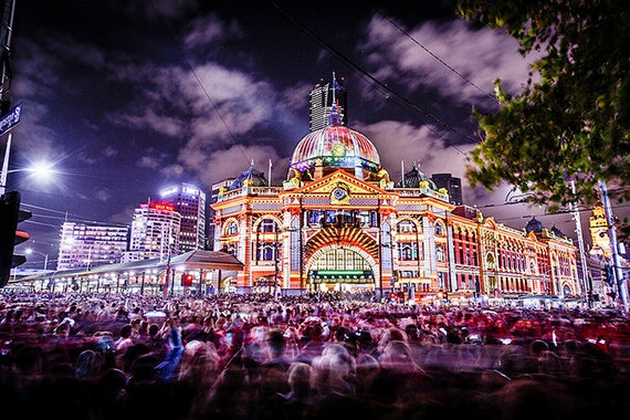 Melbourne Photography White Night Photo City Wall Art Travel Prints Flinders Street Station Boyfriend Gift For Him
